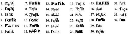 Do wyboru 34 czcionki przedstawione w ostatniej grafice. Można również podać nazwę własnej czcionki.