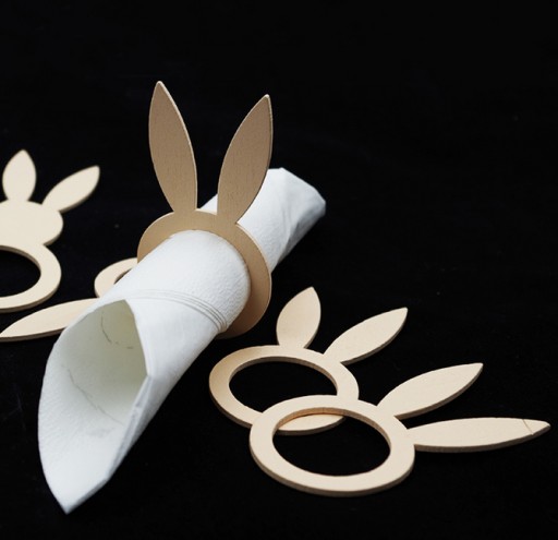 Obrączki na serwetki dodają elegancji przy stole. Wykonane z drewna uszy królika są nietuzinkowe i na pewno wprowadzą świąteczną atmosferę.
