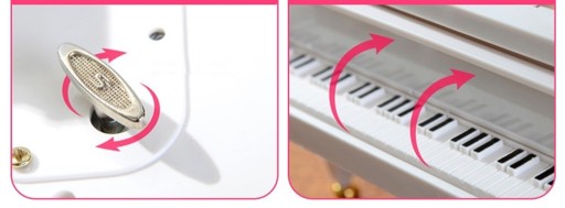 Otwórz pokrywę klawiszy pianina, aby utwór mógł być odtwarzany po przekręceniu pokrętła na dole