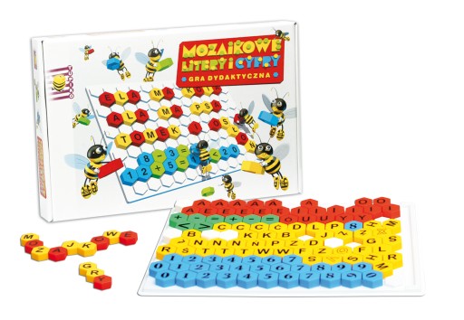 Zestaw składa się z kolorowych klocków na których nadrukowane są litery, cyfry i znaki specjalne oraz plastikowej planszy przypominającej plaster miodu. Celem gry jest ćwiczenie: koordynacji wzrokowo ruchowej, rozwijanie zdolności manualnych, analizy wzrokowej, podstaw tworzenia wyrazów i działań.