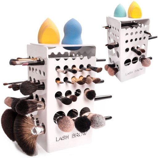 Nasza Suszarka do pędzli STANDARD WHITE to innowacyjne rozwiązanie, które umożliwia jednoczesne suszenie aż 42 pędzli oraz 2 gąbek do makijażu. Jej wyjątkowa konstrukcja sprawia, że jest niezwykle wygodna w użyciu, zapewniając stabilność, którą docenisz. Dodatkowo, możesz przestawić ją w każdej chwili, nawet gdy jest obciążona pędzlami. To idealne narzędzie do utrzymania Twojego zestawu pędzli w doskonałej kondycji.