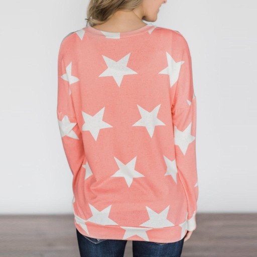 Moda damska okrągły nadruk z długim rękawem T-shirt S różowy
