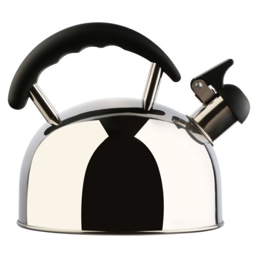 Lekki gwizdający czajnik ze stali nierdzewnej z gwizdkiem, izolowaną termicznie rączką, dużym otworem do napełniania.