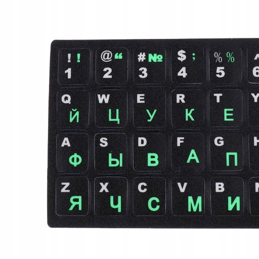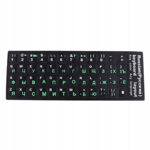 Specyfikacja każdego elementu dla 11mm x 13mm Materiały: tworzywo PCV; Kolor naklejki: czarny Kolor listu: zielony Obowiązująca klawiatura: wspólna dla wszystkich laptopów 10-17 cali, klawiatury komputerów stacjonarnych. Aby nakleić naklejki na klawiaturę, najpierw odklej naklejkę tła otaczającą klawisze. Następnie zacznij odklejać naklejki, najlepiej płaskim i cienkim przedmiotem, aby zapobiec powstawaniu odcisków palców, i naklej!
