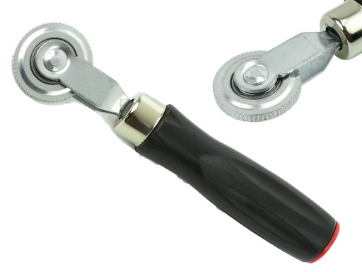 Rolka dociskowa do łatek wulkanizacyjnych z łożyskiem i kompozytową rączką.