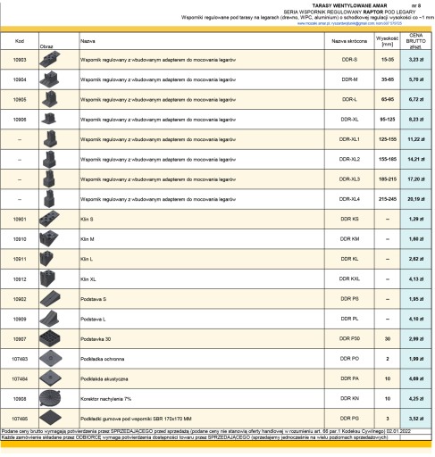 -AKCESORIA do tarasów wentylowanych: podkładki gumowe pod wsporniki, podkładki wygłuszające, klipsy dylatacyjne i do montażu maskownic
