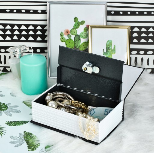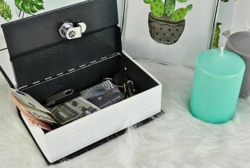 Ta niepozornie wyglądająca skrytka zamykana na klucz, to akcesorium, które przyda się nie tylko w domu, ale również w biurze czy w hotelu. Sejf na zamek zupełnie nie zwraca na siebie uwagi – wygląda jak książka, więc zupełnie nie wzbudza podejrzeń. Realistyczna imitacja słownika do języka angielskiego sprawia, że na pierwszy rzut oka nikt nie odróżni skrytki na klucz od innych książek. Taką kasetkę w książce możemy bez obaw postawić w biblioteczce wśród innych książek. Imitacja jest tak dobra, że w zasadzie sejf na zamek spokojnie można zostawić nawet na blacie szafki – nikomu nie przyjdzie do głowy, że jest to kasetka na pieniądze