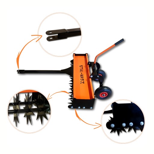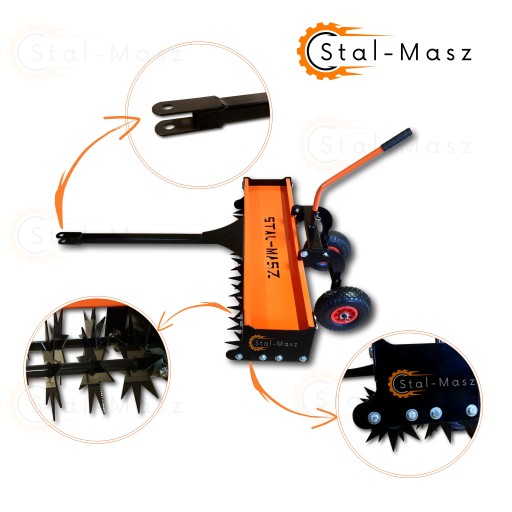 - zwiększają się zdolności regeneracyjne trawnika' Nasz aerator ma 21 noży nacinających w dwuch rzędach wszystko jest łożyskowane na 4 łożyskach. Szerokość robocza 100cm Posiada duże pompowane koła transportowe dzięki którym możemy przemieszczać się z punktu A do punktu B Możliwość dokupienia brony sprężynowej i będziemy mogli tym urządzeniem wygrabiać mech ,zeschłą trawę oraz pozostałości gałęzi .To urządzenie nie wyrywa trawy z korzeniami!!!Posiada kółka transportowe dzięki temu możemy nim swobodnie przejechać z działki na działkę czy nawet z garażu do ogrodu.Jesteśmy producentem więc kupujesz z pierwszych rąk Wszystkie elementy malowane proszkowo