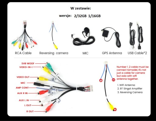 - kabel RCA z wyjściami audio