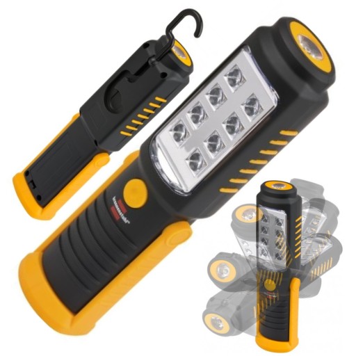 Lampa robocza LED oferuje wyjątkowo jasne światło dzięki 8 + 1 diodom LED SMD, które można wygodnie obsługiwać za pomocą przełącznika on/off. Lampa inspekcyjna LED posiada również następujące cechy: