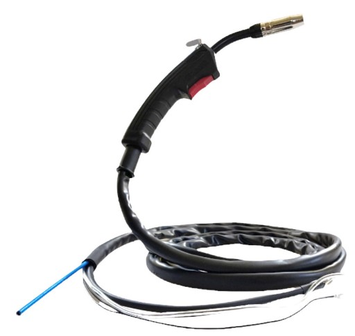 Uchwyt spawalniczy typu Einhell SGA MK-14 o długości 3 metrów, dostosowany do półautomatów spawalniczych bez elektrozaworu. Zawór gazowy jest wmontowany w rękojeść uchwytu. Uchwyt jest na stałe wmontowany w urządzenie.