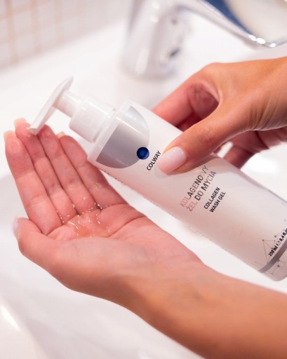 Kolagenowy Żel do Mycia przeznaczony jest dla każdego rodzaju skóry, również dla cery wrażliwej, zmęczonej, oczekującej poprawy jędrności i świeżości. Unikalny skład kosmetyku zapewnia skórze właściwe odżywienie i nawilżenie, a specjalnie skomponowany zespół bardzo łagodnych substancji myjących wyklucza podrażnienia, czyniąc zabieg mycia nie tylko twarzy, ale też całego ciała - komfortowym. COLWAY proponuje w swojej ofercie wyłącznie produkty ponadstandardowe i zawsze synergiczne z kosmetykiem XXI wieku – Kolagenem Naturalnym, pozyskiwanym bezpośrednio ze skór rybich.