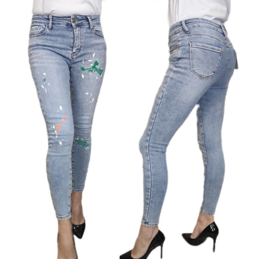 SPODNIE DAMSKIE JEANSY Z KOLOROWYM NADRUKIEM