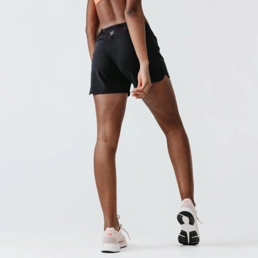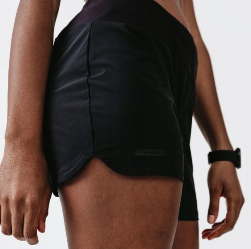 Spodenki sportowe do biegania KALENJI są lekkie, przeznaczone dla kobiet uprawiających regularne bieganie, fitness, ćwiczenia na siłowni lub inną aktywność fizyczną. Elastyczny, przyjemny w kontakcie ze skórą oddychający i szybkoschnący materiał oraz dopasowany do kobiecej figury krój, zapewniają komfort i pełną swobodę ruchów.