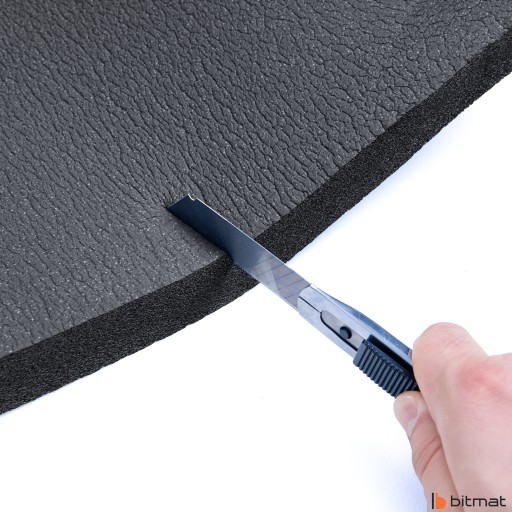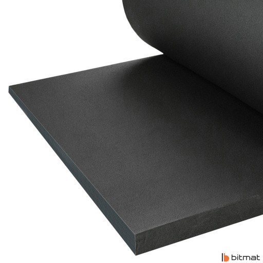 Mata wygłuszająca K40bk Bitmat — pianka izolacyjna gumowa bez kleju o strukturze komórek zamkniętych, posiada wysokie właściwości akustyczne oraz izolacyjne.