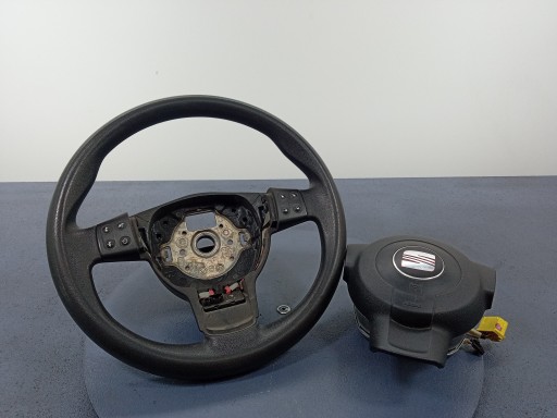 Opis: kierownica trójramienna, z multifunkcją, z poduszką kierowcy, widoczne ślady użytkowania, -jakość B && IBIZA III 6L KIEROWNICA MULTIFUNKCJA 5P0419091J