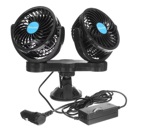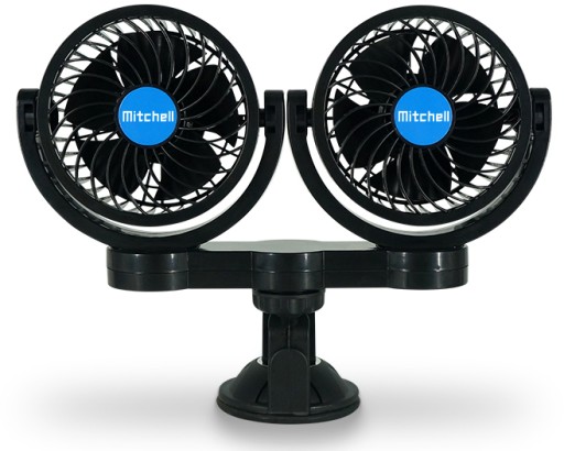 Wentylator podwójny samochodowy Turbo o rozmiarze 4" to urządzenie, które może być montowane na desce rozdzielczej za pomocą przyssawki.