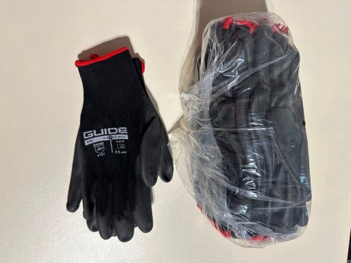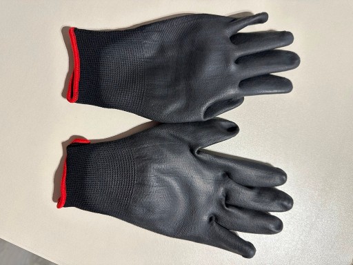 - Rękawice dziane, bez szwów, powlekane w części chwytnej poliuretanem (ściągacz).