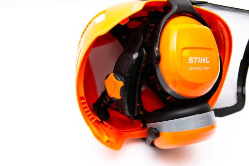 Hełm ochronny Stihl Advance Vent spełni wymagania profesjonalnych pilarzy, którzy docenią wysokie parametry oferowane przez ten model. Czasza hełmu została wykonana z wysokiej jakości tworzywa ABS, które posiada bardzo wysoką odporność na udarność oraz zarysowania, a także charakteryzuje się dużą twardością, co pozwala chronić głowę pilarza przed zranieniem pilarką lub gałęziami. Metalowa siatka ochronna wizjera zatrzyma trociny oraz ochroni twarz przed gałęziami. Ponadto dzięki wysokiej przepuszczalności światła doskonale nada się do prac w mocno zacienionych drzewostanach. Wysokiej jakości nauszniki o poziomie ochrony SNR 27 skutecznie ochronią słuch przed wielogodzinną pracą pilarką lub innymi maszynami.
