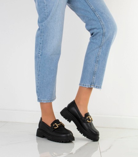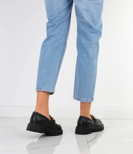 7218 CZARNE MOKASYNY MATOWE Z ŁAŃCUCHEM 39
