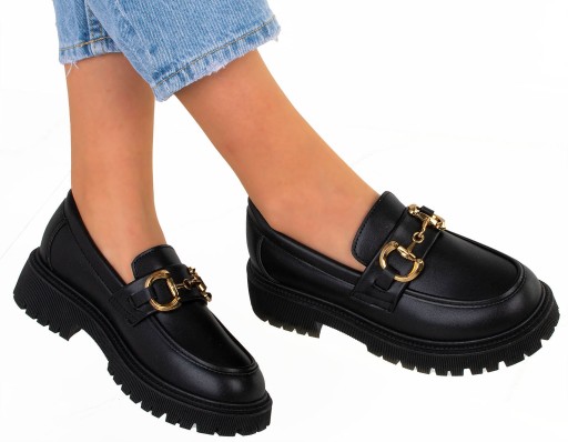 7218 CZARNE MOKASYNY MATOWE Z ŁAŃCUCHEM 37