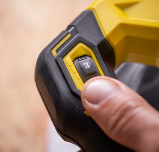 Umieszczone pod kciukiem pokrętło zmiennej prędkości zapewnia kontrolę i spójność w wielu zastosowaniach