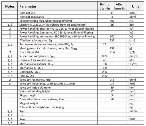 - Heavy-duty vented fiber glass voice coil former to reduce mechanical losses resulting in better dynamic performance and low-level details