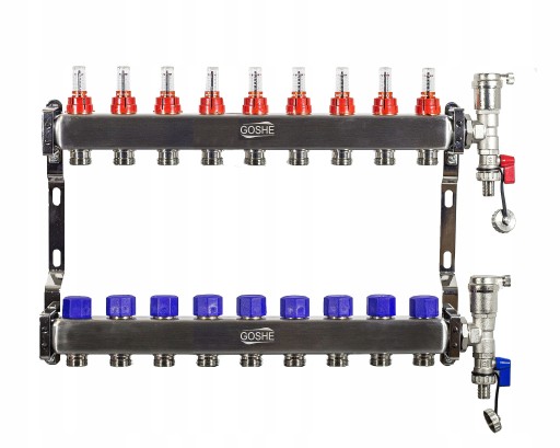 ROZDZIELACZ DO PODŁOGÓWKI OGRZEWANIA PODŁOGOWEGO 9 SEKCJI OBWODÓW STAL INOX GOSHE 0331.217