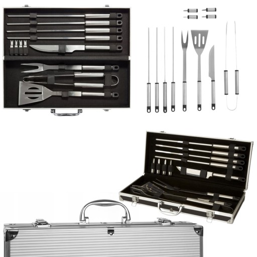 Zapewnij sobie najlepsze wrażenia z grillowania dzięki temu kompletnemu zestawowi akcesoriów do grilla w eleganckiej walizce! Ten zestaw zawiera wszystko, czego potrzebujesz, aby stać się mistrzem grilla, niezależnie od tego, czy jesteś początkującym, czy doświadczonym specjalistą.