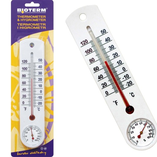 Wykonany z tworzywa. Charakteryzuje się bardzo wyraźnym nadrukiem skali na białym tle. Odczytu temperatury można dokonać zarówno w stopniach Celsjusza (prawa skala), jak i stopniach Fahrenheita (lewa skala ). W dolnej części urządzenia znajduje się higrometr do określania wilgotności powietrza w danym otoczeniu.