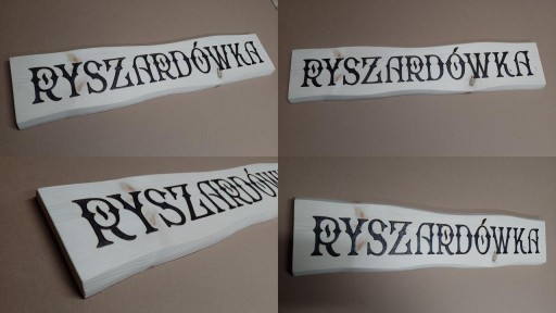 Witam. Nazywam się Piotr jestem rzemieślnikiem artystą który z pasją ręcznie wykonuję tablice i szyldy na litym drewnie. Tablice wykonane są na drewnie świerkowym po suszarni obrobione idealnie gładko a na nich wykonany napis metodą pirografii, wypalania na drewnie.