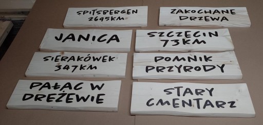 MATERIAŁ WYKONANIA: DREWNO ŚWIERKOWE PO SUSZARNI, SUROWE, SZLIFOWANE GŁADKIE. DO WYKOŃCZENIA PRZEZ KLIENTA LAKIEROBEJCĄ, LAKIEREM ŻEBY TO ZABEZPIECZYĆ PRZED WARUNKAMI ZEWNĘTRNYMI jeśli szyldy użytkuje się na zewnątrz( na innych aukcjach mam barwione i lakierowane z dłuższym terminem oczekiwania)
