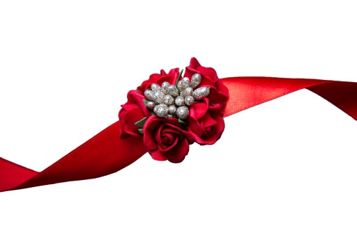 Bukieciki wykonane na efektownej szerokiej wstążce do zawiązania na rękę.