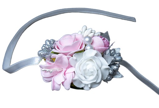 Bukieciki wykonane na efektownej szerokiej wstążce do zawiązania na rękę.