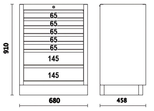 7 szuflad(588x367 mm), z prowadnicami kulkowymi