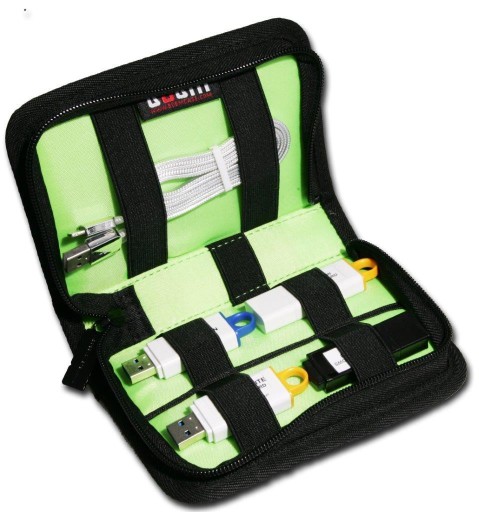 Do statywy wysokiej jakości na USB/karty SD/Kabelki czy inne drobne akcesoria marki BUBM, Etui wykonane z cordury w kolorze czarnym