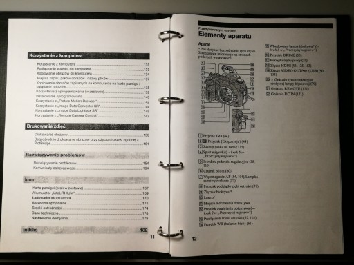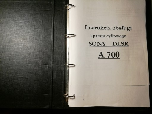 Instrukcja obsługi do aparatu SONY A700 w formacie A4 , co ułatwia korzystanie z niej, wpięta do segregatora A4.