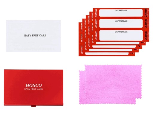 Naklejki ochronne zaprojektowane tak, aby każdą naklejką można było wyczyścić 5-10 progów. Jeden arkusz pozwala bez problemu na konserwację jednej gitary.. W ofercie są dostępne 3 rodzaje zestawów, dedykowane do różnych szerokości progów, ze szczelinami : 2,0mm (0,080"), 2,4mm (0,095") oraz 2,8mm (0,110").