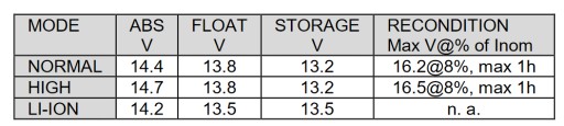- Obsługiwane akumulatory: Kwasowe, bezobsługowe,CA/CA, EFB, AGM, GEL, Lithium, LifePo4