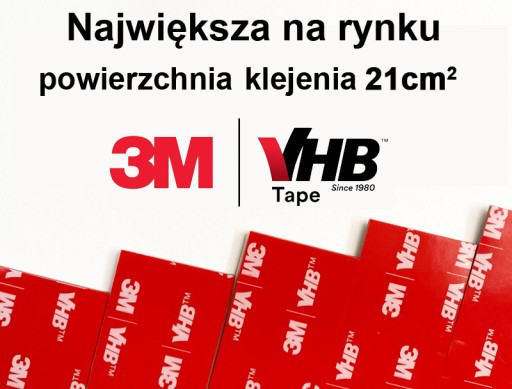 - Przyklejany za pomocą bardzo wytrzymałej taśmy renomowanej firmy 3M VHB