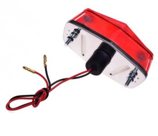 OPIS: LAMPA TYŁ. WYKONANA Z METALU - CHROMOWANA, KLOSZ CZERWONY Z TWORZYWA SZTUCZNEGO. W KOMPLECIE ŻARÓWKA DWUWŁÓKNOWA 12V 23/8W. LAMPA POSIADA ŚWIATŁO POZYCYJNE, STOP ORAZ PODŚWIETLENIE TABLICY