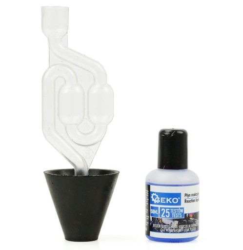 W przypadku uszkodzonej uszczelki pod głowicą lub samej głowicy część gazów spalinowych, zawierających m.in. CO2 trafia do układu chłodzenia. Zasada działania przyrządu opiera się na pomiarze stężenia CO2 - w przypadku zwiększonego stężenia płyn reakcyjny wchodzi w reakcję z CO2 i zmienia swoją barwę.