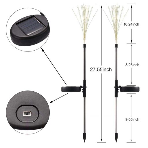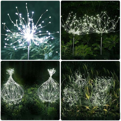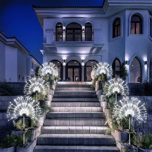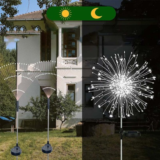 Słoneczne światło fajerwerków ma dwa tryby świecenia. Gdy przełącznik jest ustawiony na stronę ON, jest to tryb migania, przełącznik znajduje się w stanie OFF w środkowej pozycji, a pozycja OFF to tryb stałego światła. To kreatywny prezent dla przyjaciół lub sąsiadów na Boże Narodzenie, Halloween i Święto Dziękczynienia. To zewnętrzne oświetlenie dekoracyjne oświetli tarasy, klomby, ogrody, podwórka, ogrodzenia, chodniki i ścieżki itp.
