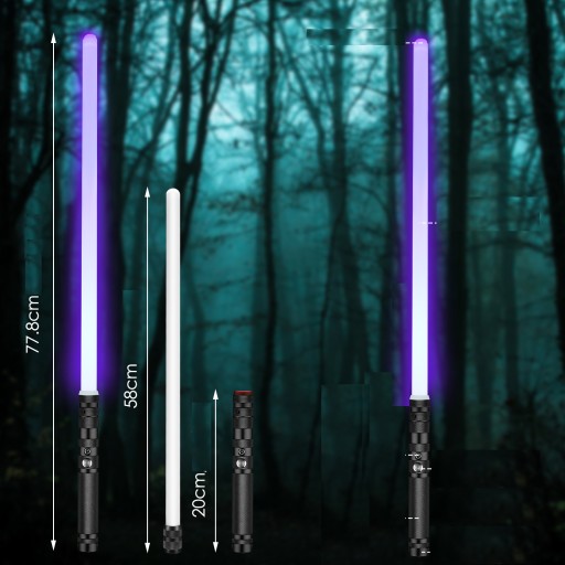 [14 wymiennych kolorów i prawdziwych dźwięków]: szable zmieniające kolor RGB 14 pozwalają mieć fioletowe szable, zielone szable, niebieskie szable, czerwone szable i więcej w tym samym czasie. Lightsaber RGB łączy specjalne efekty dźwiękowe walki i tryb Light Flash, aby zapewnić żywe i realistyczne wrażenia z walki. (z i tryb cichy)