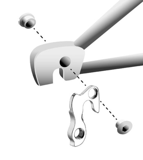 Hak przerzutkowy pasujący do ram rowerowych różnych producentów.