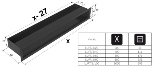 Kratka kominkowa wentylacyjna luft 60x600mm