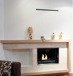 Jest ona instalowana w ścianie lub w czopuchu obudowy kominkowej.