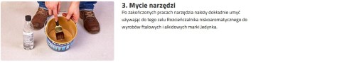 - Powierzchnie należy oczyścić, osuszyć, odżywiczać, usunąć wszelkie plamy z oleju lub wosku.