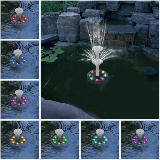 8 świateł LED, powoli migające światła.W nocy światła na przemian w 7 różnych kolorach, dzięki czemu fontanna w ogrodzie wodnym nie tylko wygląda pięknie i uroczo. Dla tych, którzy właśnie przychodzą z pracy, może pomóc im złagodzić ich zmęczony nastrój. Udekoruj swój ogród za pomocą solarnej pompy wodnej, aby Twój ogród wyglądał tak ciekawie.