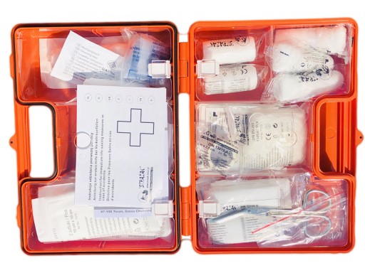 • Zawiera bogate wyposażenie opatrunkowe niezbędne do udzielenia pierwszej pomocy w domu lub małej firmie